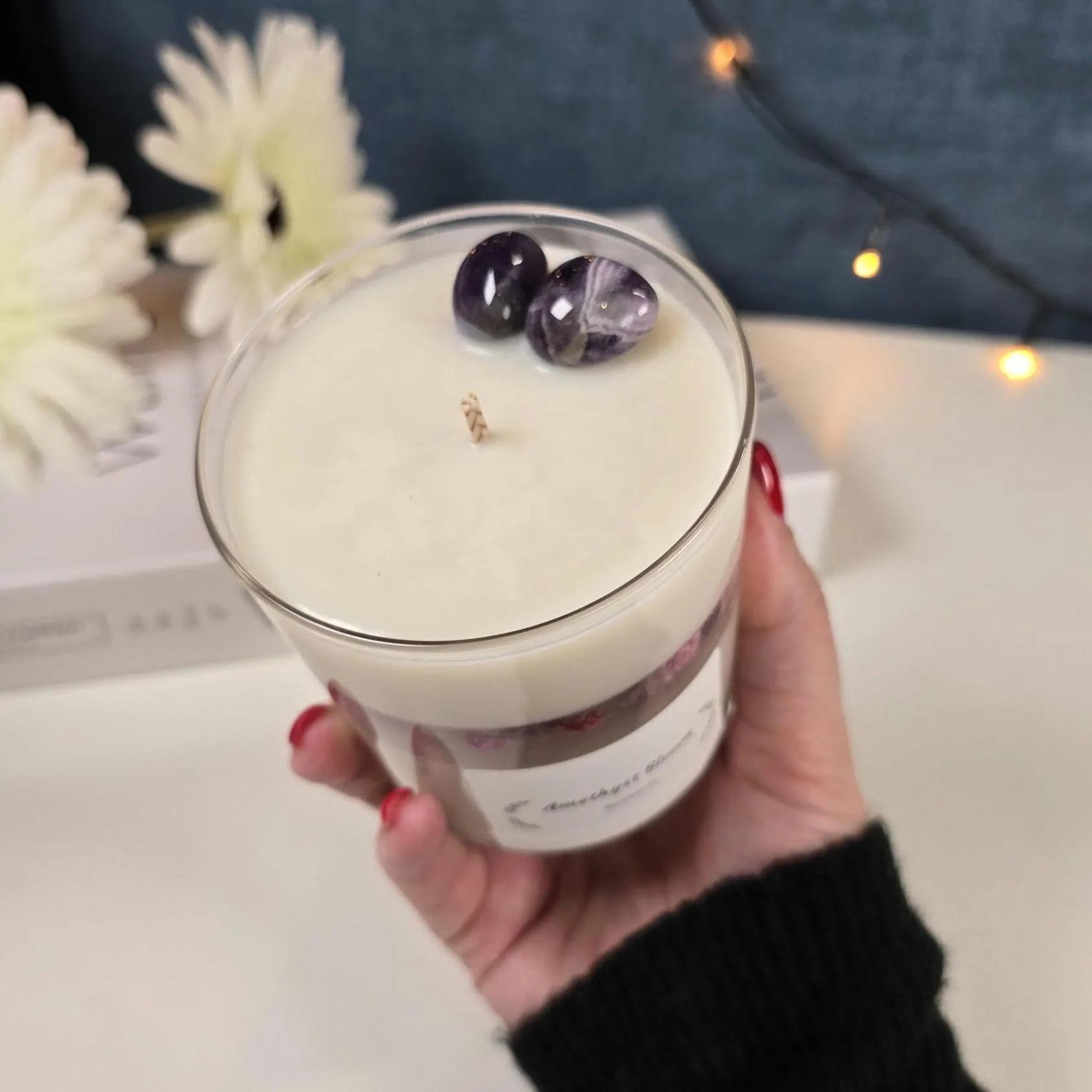 Amethyst Crystal Candle: Scented Soy & Gel Wax, Healing Energy