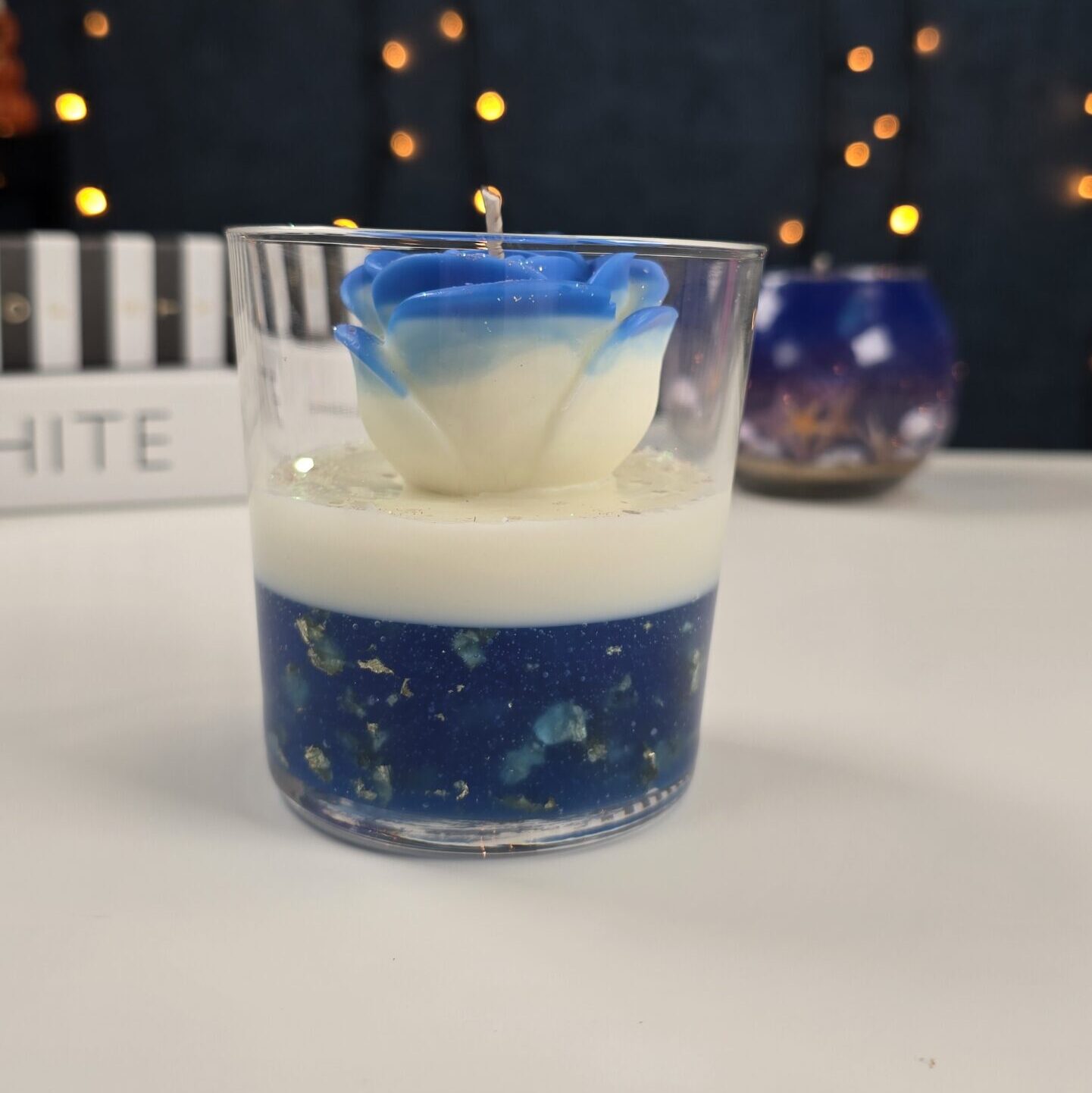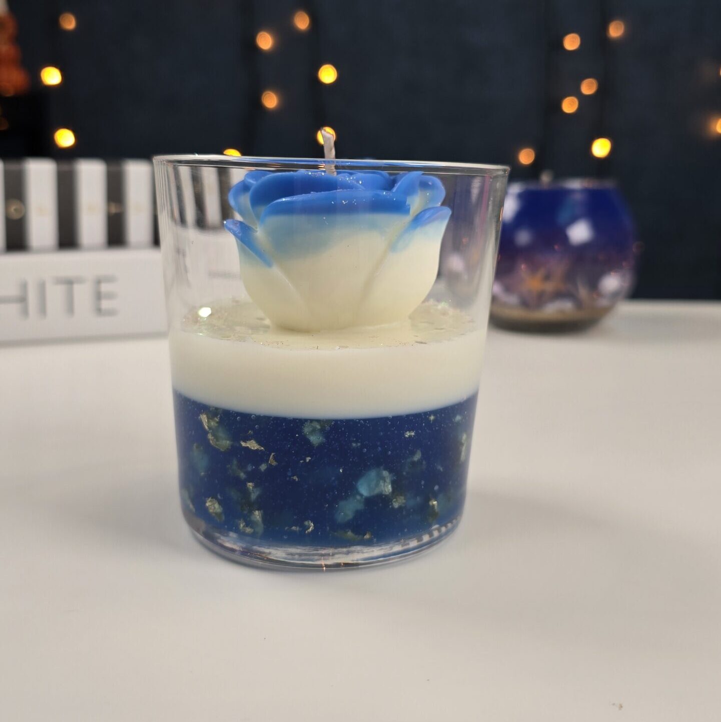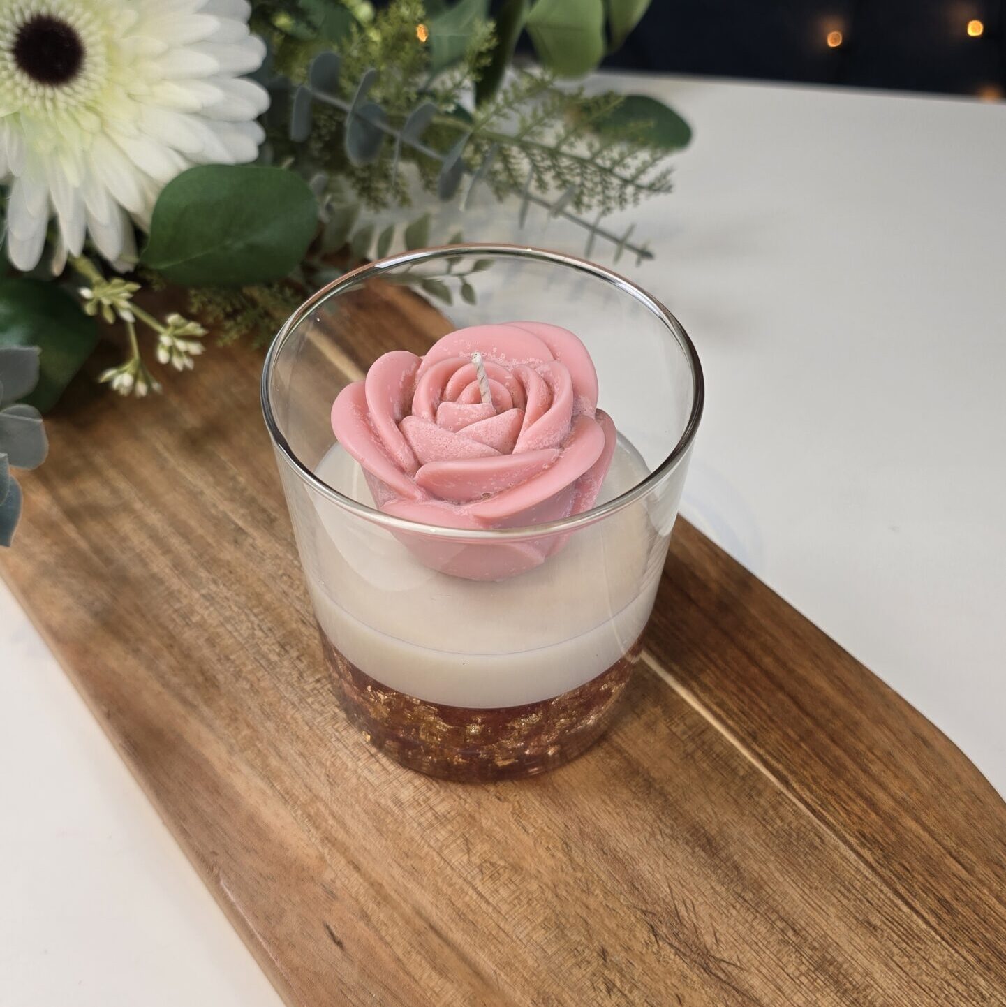Handmade Rose Candle with Gely layer in glass