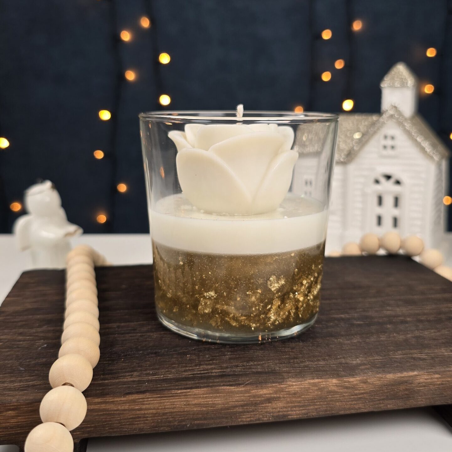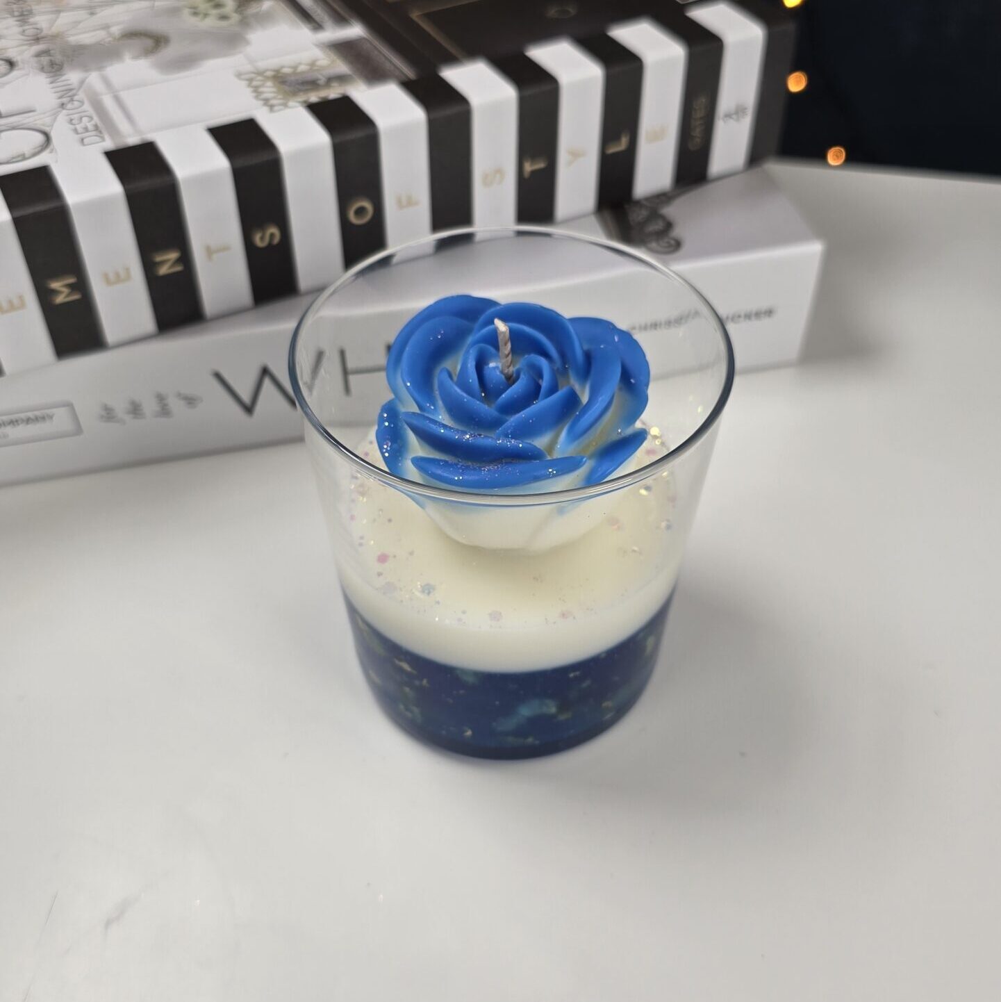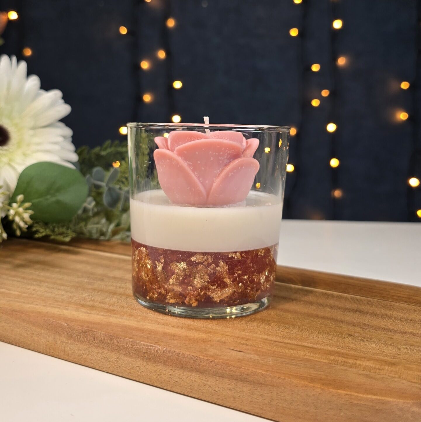Handmade Rose Candle with Gely layer in glass