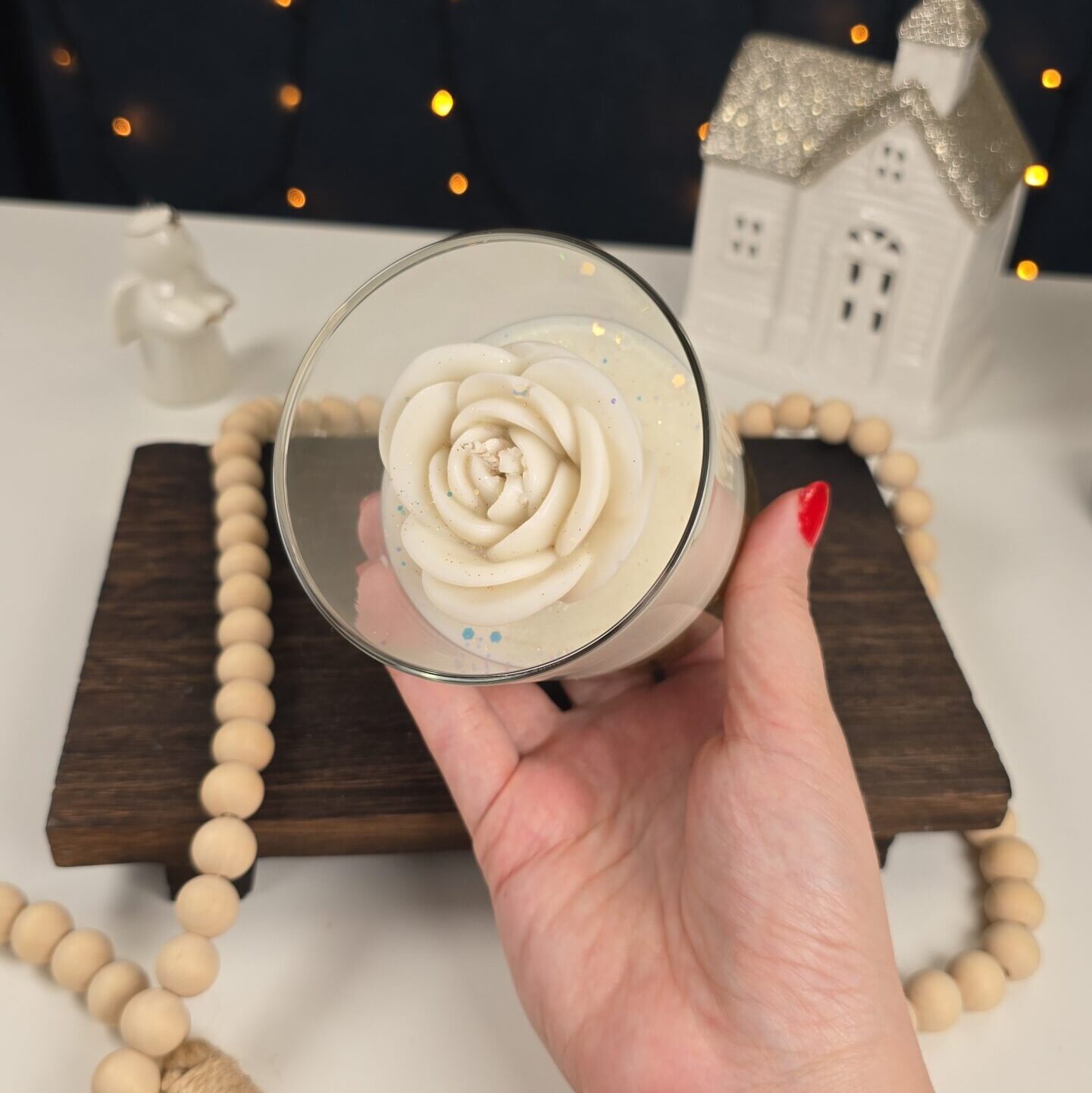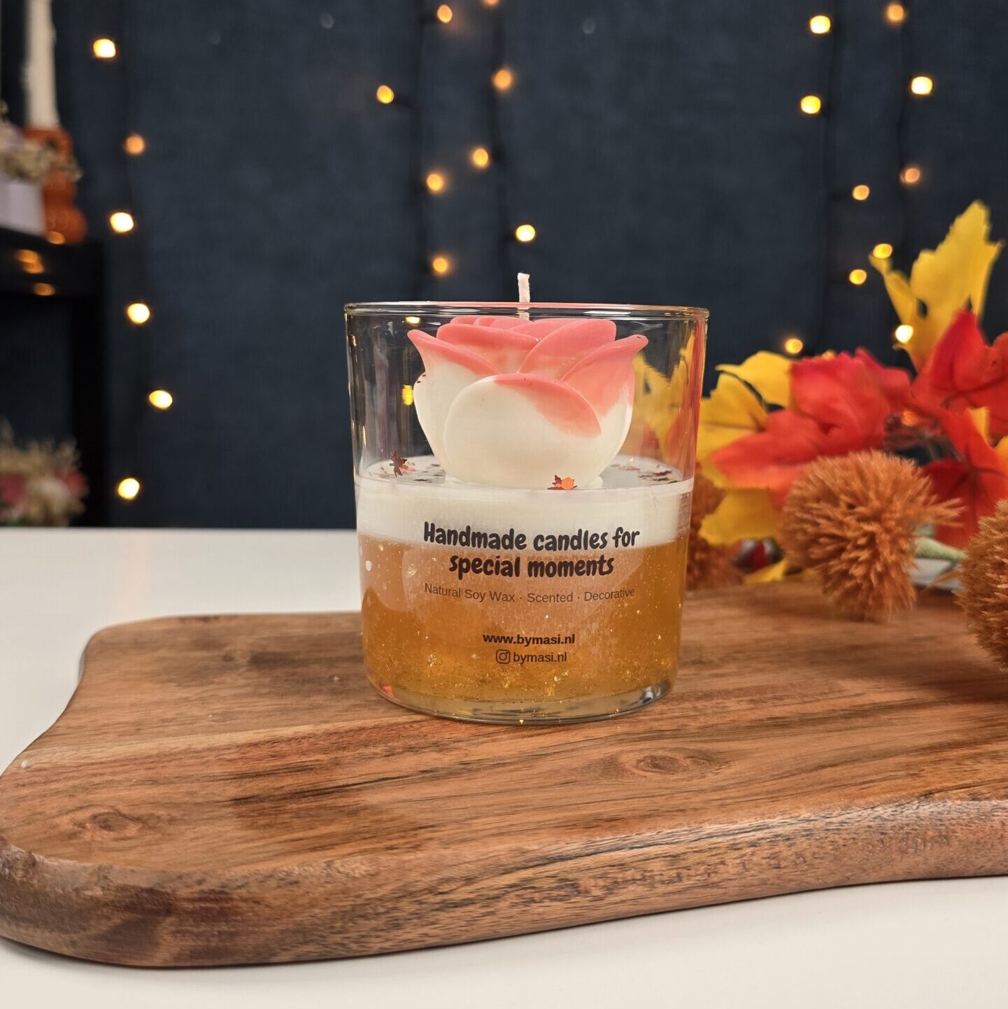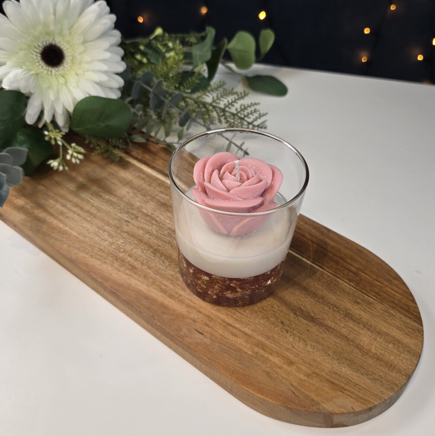 The highlight of this candle is the rose-shaped top, which you can customize in your favorite color and scent.